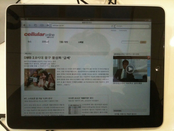 아이패드 이르면 내달부터 개인용에 한해 아이패드 국내 도입이 가능해진다. 전파연구소 시험 결과를 바탕으로 인증을 면제해주기로 한 방통위 결정 때문이다. 사진은 아이패드로 보는 ‘셀룰러’ 초기화면. 아이폰으로 찍었다. (Visited 23 times, 1 visits today)