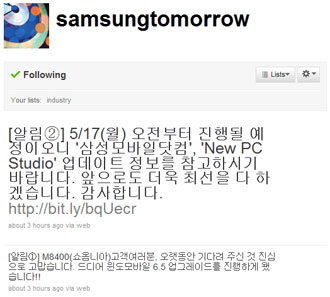 1 Next → 삼성전자는 자사 공식 트위터(@samsungtomorrow)를 통해 쇼옴니아 윈모 6.6 업그레이드를 공식 밝혔다. (Visited 5 times, 1 visits today)