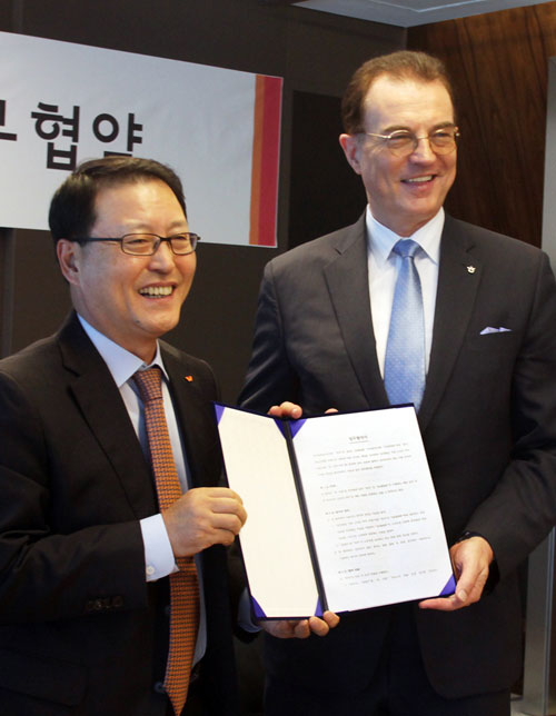 3 Next → SK텔레콤 정만원 CEO(왼쪽)와 한국관광공사 이참 사장이 조인식에서 업무 협약서에 서명 한 후 포즈를 취하고 있다. (Visited 5 times, 1 visits today)
