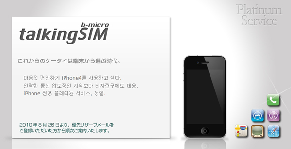 아이폰4 Next → 일본통신이 소프트뱅크모바일 전용 아이폰4를 도코모 회선에서도 이용할 수 있는 마이크로SIM 서비스를 내놓았다. 해외 ‘SIM 프리’ 단말 대상이다. (Visited 11 times, 1 visits today)