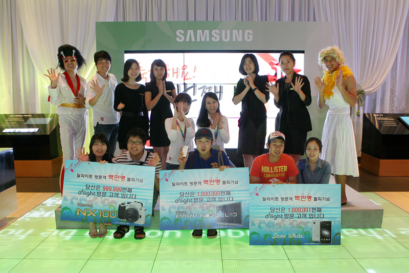 100만번째 방문객들과 친구들이 기념사진을 촬영하고 있다.