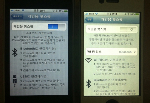 왼쪽 아이폰3Gs, 오른쪽 아이폰4. ‘WiFi’가 없고, 있고의 차이다.