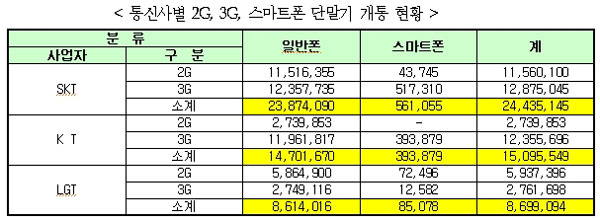 송 의원에 따르면, 현재 국내 스마트폰 비율은 전체 2.2%에 그치고 있지만, 방통위 및 이동통신 사업자 등의 스마트폰 활성화 정책에 따라 지속 확대될 것으로 보인다.