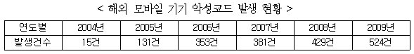 송 의원은 “지난해 4월부터 위피(WIPI) 의무 탑재가 해제되고 아이폰 등 스마트폰 보급이 시작되면서 국내에서도 모바일 악성코드 발생 위험성이 높은 상황”이라며, “현재 국내에서 공식 보고는 없지만, 서둘러 대책을 마련해야 한다”고 인터넷진흥원에 촉구했다.