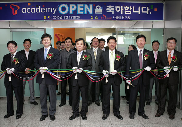 SK텔레콤은 29일 오전 11시 서울대 연구동 2층에서 모바일 전문 교육 센터인 ‘T아카데미(www.tacademy.co.kr)’ 오픈 행사를 가졌다. 사진 왼쪽부터 SK텔레콤 이성호 Entertainment사업팀장, 이노에이스 현광립 기술연구소장, SK텔레콤 홍성철 서비스부문장, SK텔레콤 김후종 서비스기술원장, SK텔레콤 김진홍 서비스개발담당, 이노에이스 배재신 C&A사업본부장