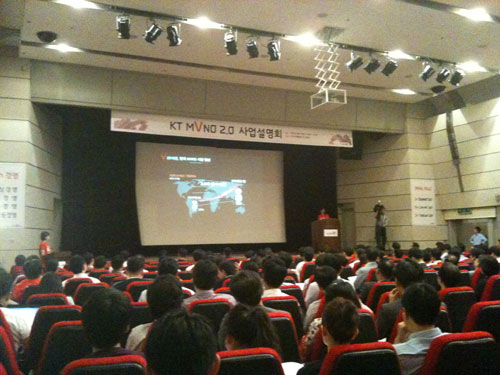 KT(대표 이석채 www.kt.com)는 17일 오전 10시 서울 서초구 우면동 KT 연구개발센터에서 KT 개인고객부문 표현명 사장과 양현미 전무 등 KT 관계자 20명과 MVNO(Mobile Virtual Network Operator, 가상이동통신망) 사업 희망자 300여 명이 참석한 가운데, MVNO 사업 2차 설명회를 가졌다.
