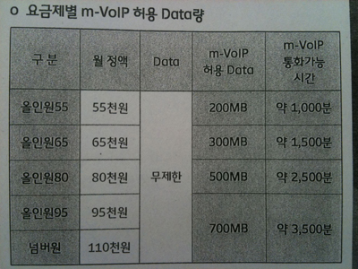 단, m-VoIP도 데이터무제한 서비스와 함께 데이터망 안정성을 위해 올인원 55 요금제 이상 고객에게 우선 적용된다. SKT는 독자 앱을 개발하는 대신, 스카이프 등 범용 프로그램을 이용토록 한다는 방침이다.