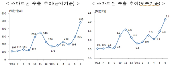 지경부는 향후 휴대폰 수출은 국내업체의 스마트폰 라인업 확대로 선진국 시장을 중심으로 점차 회복될 것으로 기대했다.