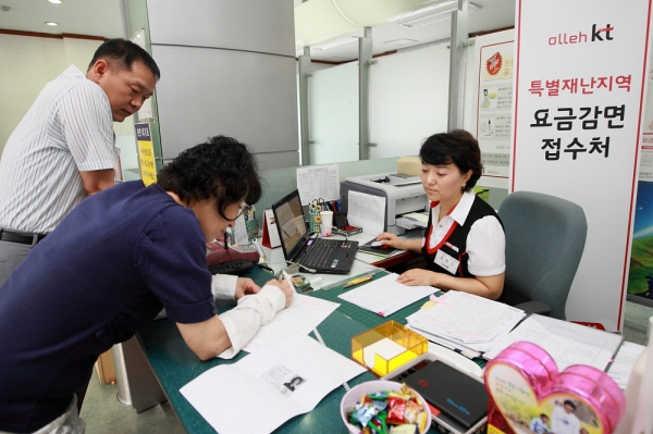각사 피해고객이 혜택을 받으려면 KT는 11일부터 31일까지, LG유플러스는 16일부터 31일까지, SKT는 11일부터 9월 10일까지?수해지역 읍/면/동 사무소에서 발급하는 재난피해사실확인서와 신분증을 지참하고, 해당 지역 KT플라자나 LG유플러스·SKT 지점을 방문하면 된다.