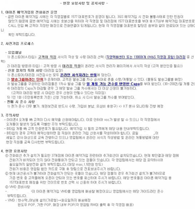 예판 관련, 특히 ‘3무 불가’를 강조하고 있다. 채권보전료 반드시 수령, 가입비 분납, 유심비 후청구 등 판가 준수를 이행토록 했다. KT 본사 차원의 모니터링도 예고, 엄중한 처리가 예상된다.