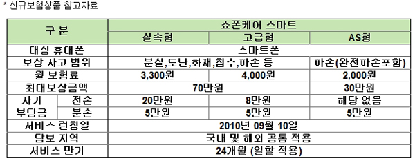 먼저 쇼폰케어 스마트는 국내 최초로 담보지역을 해외까지 확대, 해외사고에 대해서도 보상이 가능하다. 또한 분실을 제외한 파손에 대한 담보만을 원하는 고객의 요구를 반영해 AS전용 보험인 ‘쇼폰케어 스마트 AS형’도 출시했다.