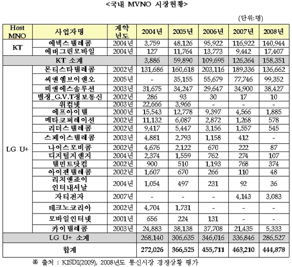 정부는 친서민 정책의 일환으로 이동전화 요금할인을 통한 이용자 편익제고를 위해 ‘전기통신사업법’ 개정(제38조)을 통해 MVNO를 도입, 지난 9월 23일부터 이를 시행하고 있다.