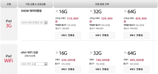 ▲유심비, 채권보전료는 3G 모델에 대해 납부하는 게 맞고, 와이파이 모델에 대해서는 일시불로 현금이나 카드할부 완납을 통해서 가능하다.