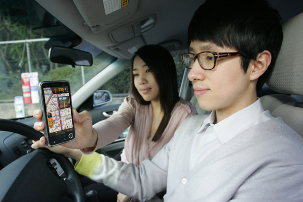 LG유플러스가 실시간 교통상황을 반영, 목적지까지 가장 빠른 길을 안내하는 지능형 모바일 내비게이션 서비스 ‘OZ Navi’안드로이드 애플리케이션을 출시한다 사진은 ‘OZ Navi’를 이용해 목적지까지 이동 경로를 안내 받고 있는 모습