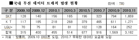 이 의원은 이처럼 절단율이 1년 새 급격히 상승한 것은 스마트폰의 확산과도 관련이 깊다고 주장했다. 스마트폰 가입자 증가와 함께 데이터 사용량이 315TB(2009. 10월)에서 2305TB(2010.10월)로 630%나 증가해 음성 통화 품질 저하를 유발했을 가능성이 크다는 게 이 의원 분석이다.