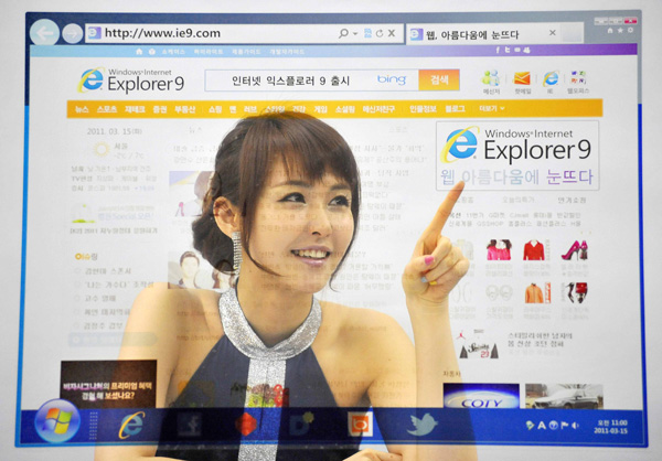 한국마이크로소프트는 챠크라(chakra) 엔진과 하드웨어 가속장치 사용으로 베타 버전 대비 35% 속도 향상을 이룬 ‘인터넷 익스플로러 9(IE9)’ 정식버전을 출시했다고 15일 밝혔다.
