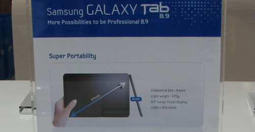 이외 포켓나우에 따르면, 태블릿용 안드로이드 3.0(허니콤) 버전을 탑재한 8.9인치 갤럭시탭은 1280×800(WXGA) 디스플레이와 1GHz 듀얼코어 CPU를 장착했다.