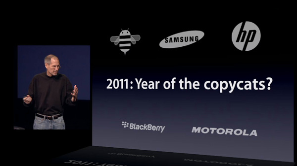 한편, 애플 스티브잡스는 지난 3월초 애플 아이패드2 발표 당시, 삼성전자 ‘갤럭시탭’ 등 태블릿 후발사 제품들이 자사 아이패드를 모방해 제품을 내놓았다며 이들을 ‘카피캣(Copy cat)’이라고 꼬집은 바 있다.