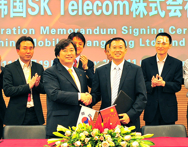 SK텔레콤 T스토어가 7월부터 차이나모바일 앱장터에 ‘숍인숍’ 형태로 진출한다. 양사는 최근 SK텔레콤 이주식 서비스 플랫폼 부문장과 광동차이나모바일 치우원후이(Qiu Wen Hui) 부총경리 등 각 사 모바일 콘텐츠 사업 총괄 임원들이 참석, 모바일 콘텐츠 교류 및 에코시스템 구축 협력에 대한 양해각서를 체결했다.