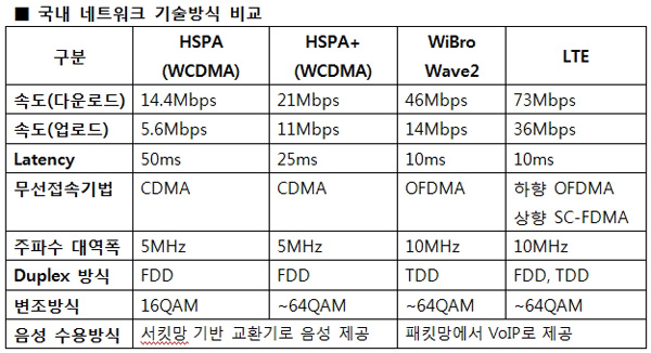 한편, 회사측에 따르면, LTE는 수신과 발신 대역을 각각 10MHz로 활용하면 기존 3세대(하향 14.4Mbps) 서비스보다 데이터 전송속도가 5배 빠른 73Mbps(하향)를 제공하며, 상향은 36Mbps이다. 이는 1.4GHz 영화를 한편 내려받는데, 기존 3G 서비스가 7분 걸리지만, LTE는 불과 2분이면 다운받을 수 있다.