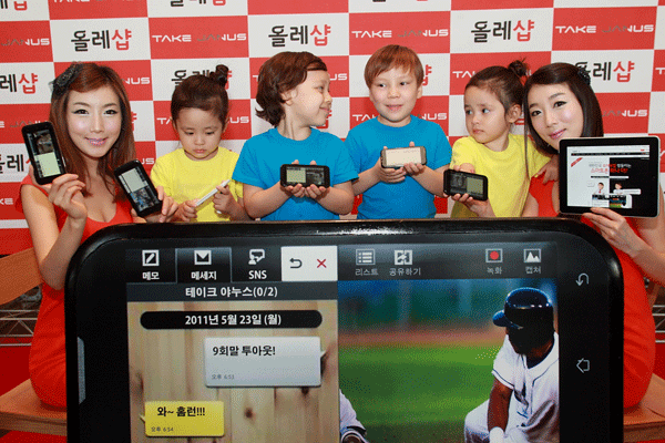 KT(대표 이석채)는 20일, 올레샵에서 ‘테이크 야누스(KM-S200)’ 출시를 기념, 쌍둥이 고객 대상으로 1대 가격으로 2대를 구매할 수 있는 ‘쌍둥이 원앤원 이벤트’를 이달 30일까지 진행한다고 밝혔다.