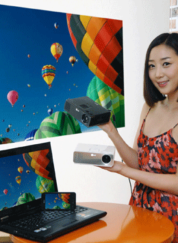 회사측에 따르면, 이 제품은 국내 휴대용 LED 프로젝터로서는 최초로 HD(1280 X800) 16:9 와이드 화면을 지원하고, 기존 XGA 급(1020 X768) 프로젝터보다 최대 160% 선명한 화질로 최대 100인치 크기의 화면으로 볼 수 있다.