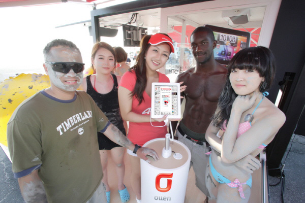 KT는 전국 주요 도시를 순회하며, 최신 IT기기와 서비스를 체험할 수 있는 ‘올레 팝업 스토어’를 운영한다. 충남 보령 대천해수욕장에서 운영중인 ‘올레 팝업스토어’를 고객이 이용 중인 모습