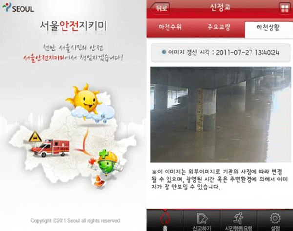 이와 관련, 서울시는 시민의 안전을 위한 ‘서울 안전지키미’ 앱을 지난 7월 초 개발, 배포했다. 이 앱은 장마철 집중호우나 태풍 등 재난정보를 실시간으로 보여준다.