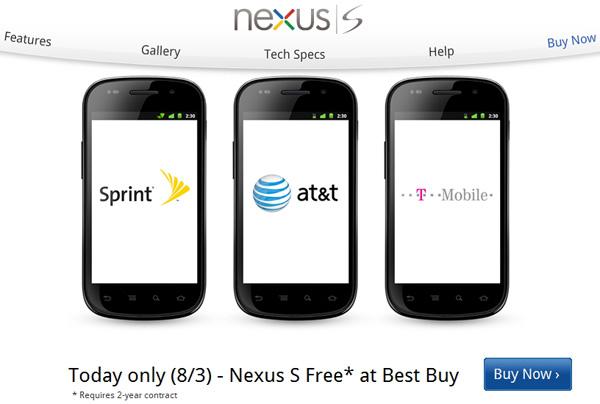 구글이 베스트바이를 통해 2년 약정을 조건으로 ‘넥서스S’를 3일(현지시각) 하루 한정 무료 공급하는 행사를 갖고 있어 주목된다.