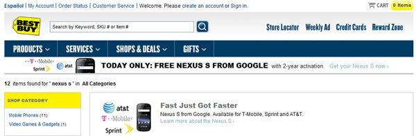 구입을 희망하는 사람은 미국 베스트바이(Best Buy) 온라인 상점에서 AT&T와 T모바일(T-Mobile), 스프린트 3개 이통사 중 하나를 선택, 2년 약정으로 넥서스S를 무료 사용할 수 있다.