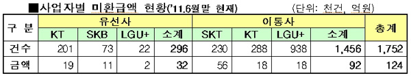 미환급액은 요금 과오납, 해지에 따른 가입 보증금?단말기 보증보험료의 반환액 발생 등으로 인해 통신사업자가 이용자에게 환급해야 하지만, 환불계좌 미보유 등의 사유로 돌려주지 못한 금액이다. 방통위에 따르면, 지난 6월말 현재 약 175만건, 124억원에 달한다.