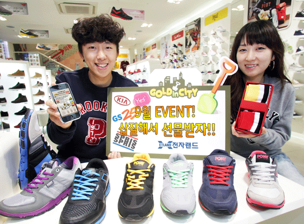 참여만 하면 100% 당첨되는 경품에는 스프리스 1만원 상품권, 전자랜드 소형가전 5% 할인쿠폰, GS수퍼마켓 할인쿠폰, 예스 언더웨어 2,000원 할인쿠폰, 기아자동차 방문기념 음료 2개 등이 있으며, 브랜드 별로 추첨을 통해 신발, 전통시장 5만원 상품권 등을 받을 수 있다.