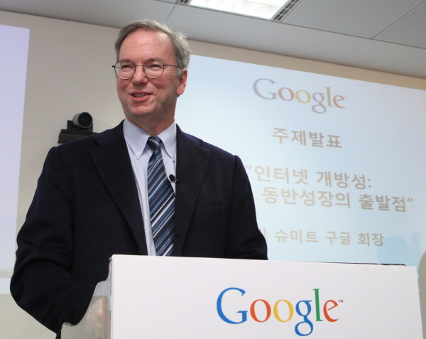 구글의 에릭슈미트 회장은 8일, 역삼동 구글코리아 본사에서 ‘혁신을 위한 개방’이라는 주제로 기자간담회를 열고 안드로이드를 포함, 모바일 시장의 급성장 속, 개방성의 중요성을 강조했다.