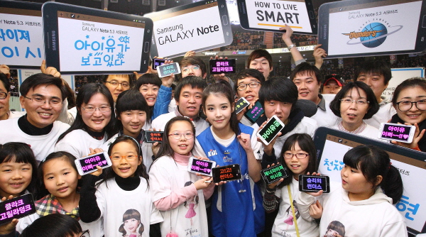 [포토]갤럭시노트, 농구응원 ‘한몫’ 김 종한 2012/02/13 2012/02/13 [포토]갤럭시노트, 농구응원 ‘한몫’에 댓글 닫힘 지난 11일 서울 잠실 실내체육관에서 열린 프로농구 삼성 썬더스 대 동부 프로미 경기에서 ‘갤럭시 노트 5.3 서포터즈’가 ‘갤럭시 노트’의 5.3형 대화면에 자신들이 원하는 응원 문구를 만들어 열띤 응원을 하는 등 새로운 응원 문화를 선보여 눈길을 끌었다. ‘갤럭시 노트 5.3 서포터즈’가 삼성전자 갤럭시 광고 모델 아이유와 함께 힘찬 응원을 다짐하고 있다. (Visited 44 times, 1 visits today) 관련기사