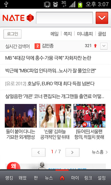 우선 뉴스에 실시간 이슈 등 컨텐츠가 추가됐다. 시사/스포츠/연예 뉴스 각각의 카테고리에 기존 버전에서 제공하던 랭킹 뉴스 30개 이외에 이 시각 주요 뉴스, 실시간 속보 등 다양한 기사들을 추가했다. 스포츠 카테고리에서는 카툰/칼럼 코너도 생성해 네이트의 인기 스포츠 카툰과 전문가 칼럼도 쉽게 찾아 볼 수 있다. ? 판서비스에는 동영상 코너를 신규로 제공해 보는 재미를 더했다. 동영상 코너는 네이트 추천 동영상, 유투브 추천 동영상, 베스트 동영상, 일자별 베스트 동영상, 스페셜 방송 동영상 등의 구성으로 운영된다. 특히 스페셜 방송 동영상에는 현재 ‘안녕하세요’(KBS)와 ‘스튜디오C’(MTV)의 주요 장면 동영상 클립이 제공 중이다. ? 한편 네이트앱 메인을 대폭 변경, 네이트 모바일웹 메인(http://m.nate.com)과 통합 운영해 통일성을 강화했다. 컨텐츠 영역도 좌우/상하 사이즈를 각각 확대해 첫 페이지에서 더욱 다양하고 풍성한 정보를 한눈에 보기 쉽게 찾을 수 있도록 했다. ? 일촌소식도 더 자세하게 알 수 있다. 기존에는 업데이트 소식 이 있는 일촌의 이름만 알려줬으나 3.0에서는 누가 어느 곳에 어떤 제목으로 새 글을 올렸는지도 표시된다. ? 네이트앱 3.0은 안드로이드 플레이마켓과 티스토어에서 무료로 다운 받을 수 있으며 iOS용도 7월 중 업데이트 될 예정이다.