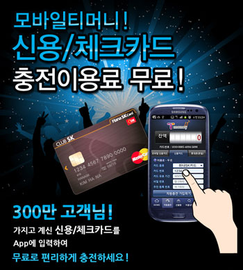 한국스마트카드(대표 최대성)는 모바일티머니 가입자 300만명 돌파를 기념하며 신용(체크)카드 충전이용료 무료 프로모션을 진행한다고 밝혔다.