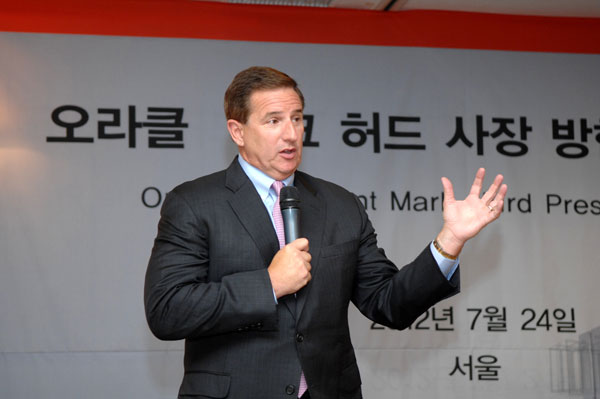 오라클의 마크 허드(Mark Hurd) 사장이 24일 방한해 고객들이 기존 인프라를 완벽히 최적화된 데이터센터로 탈바꿈하고, 비즈니스 혁신을 가속화할 수 있도록 지원하는 전략적 로드맵인 오라클 데이터센터 최적화(Oracle Optimized Data Center) 전략을 발표했다.