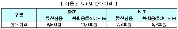 이와 관련, 이통사는 2월까지 통신전용 USIM 약 2000원, 복합용 약 1000원을 인하할 계획이다. 중장기적으로는 USIM 가격과 가입비를 통합해 가입에 필요한 적정 비용 합계를 산정하고, USIM 가격과 가입비를 이 비용 범위 내에서 부과하는 방안을 검토한다는 게 방통위 복안이다.