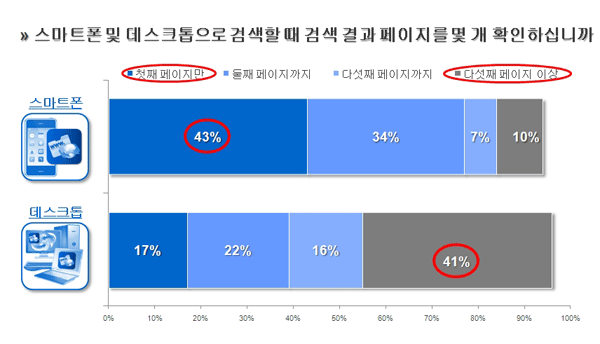 이는 데스크톱 검색 시 다섯 페이지 이상을 본다는 응답이 41%로 나타난 것에 비춰 스마트폰에서는 검색 속도와 결과의 정확성이 데스크톱보다 중요하다고 회사측은 설명했다.