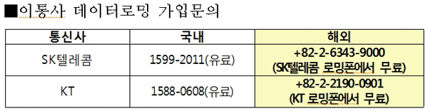 이는 국내 데이터 정액제 사용에 익숙한 이용자들이 해외 데이터로밍 요금이 국내에 비해 비싸다는 사실을 잘 알지 못해 데이터 과다 사용으로 인한 요금 피해 사례가 많은 데 따른 것이다.