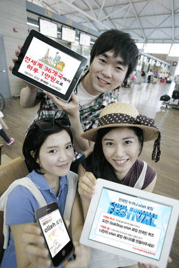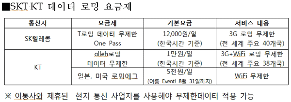 KT(대표 이석채)는 북미, 아시아, 유럽 등 36개국에서 일 1만원으로 무제한 데이터 로밍을 이용할 수 있는 로밍 요금제로 이용자를 공략하고 있다.